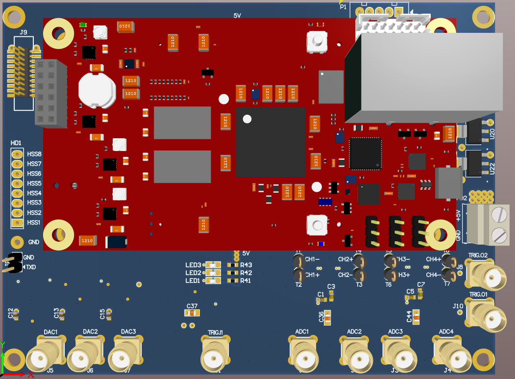 Here is 3D TOP image of 3D PCB on 120MSPS High Speed ADC - 4 Channel