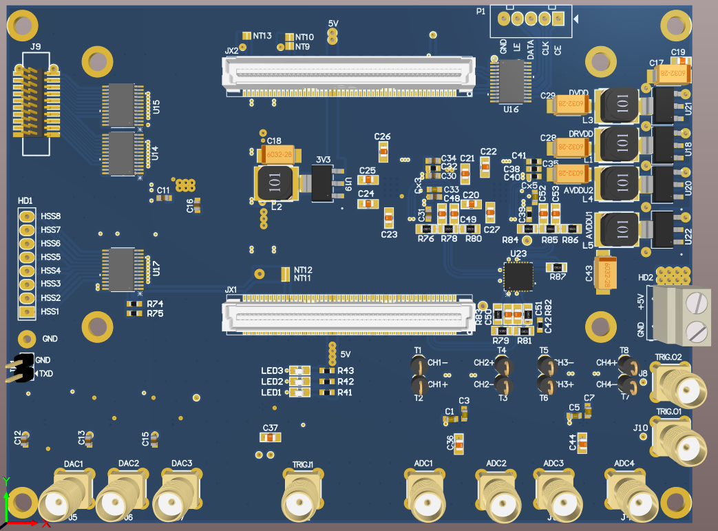 Here is 2D Top layer image of PCB on 120MSPS High Speed ADC - 4 Channel