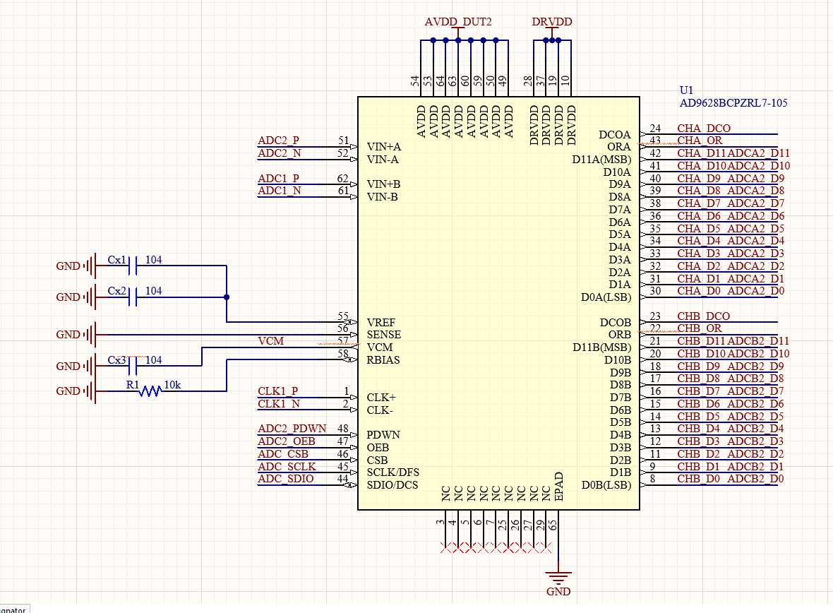 Here is schematic of AD9628 ADC in board 120MSPS High Speed ADC - 4 Channel