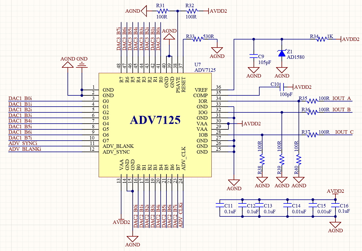 Here is schematic of ADV7125 DAC in board 120MSPS High Speed ADC - 4 Channel