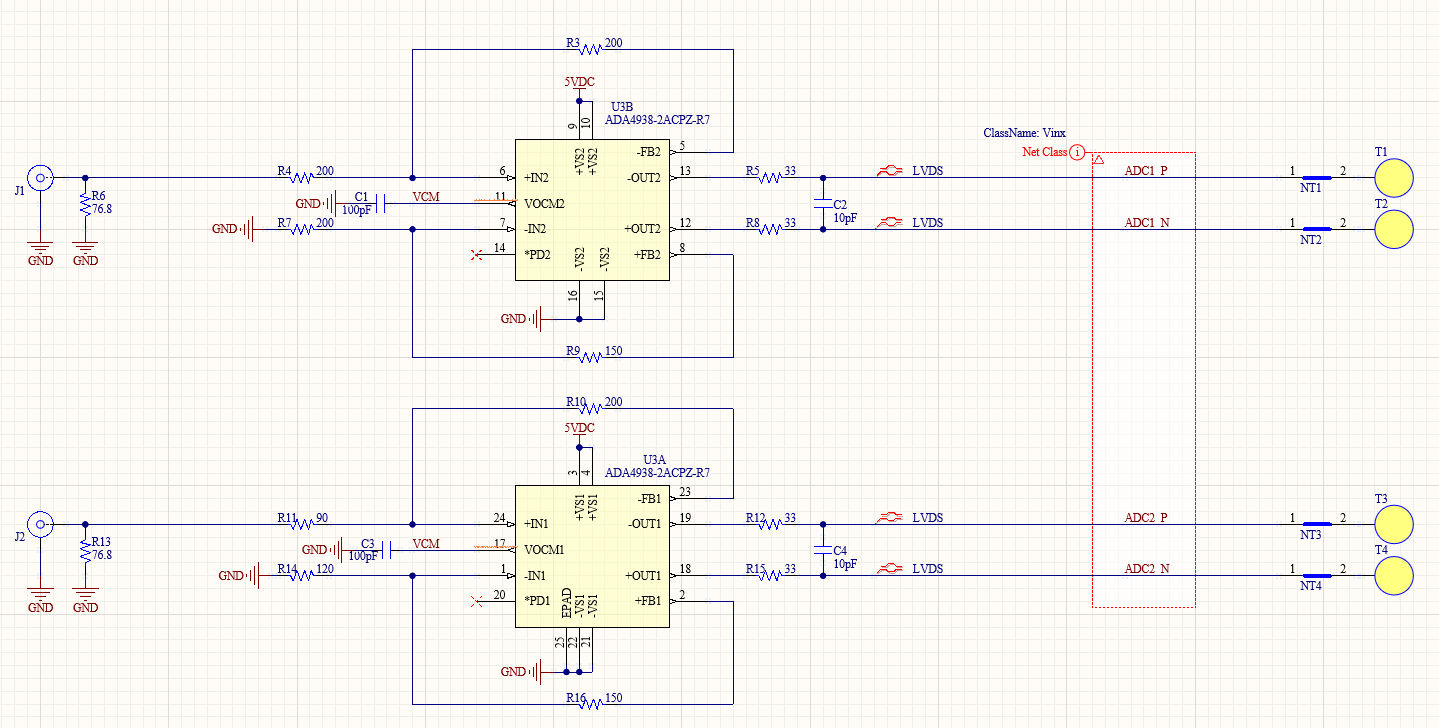 Here is schematic of ADA4938 ADC Bufffer in board 120MSPS High Speed ADC - 4 Channel