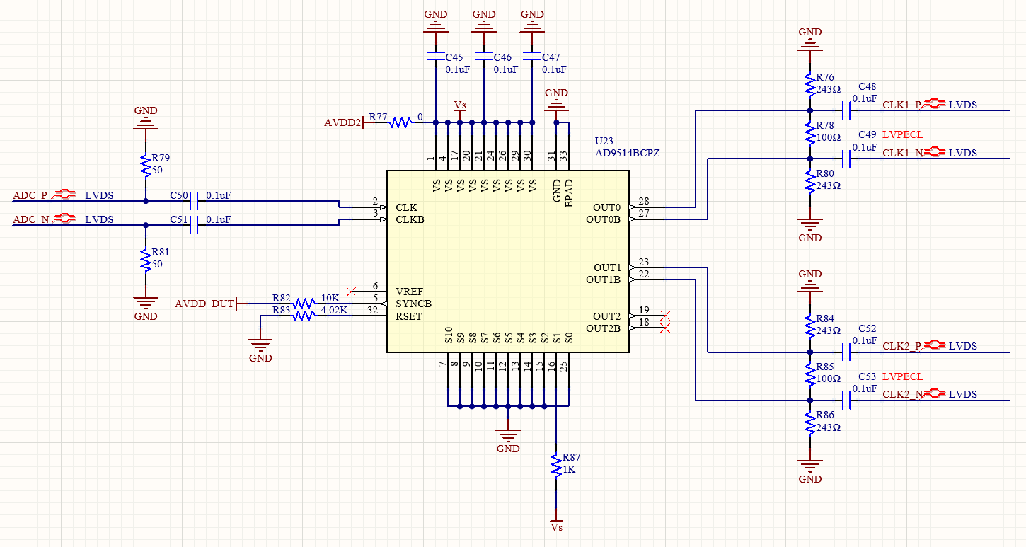 Here is schematic of AD9514 Clock buffer in board 120MSPS High Speed ADC - 4 Channel